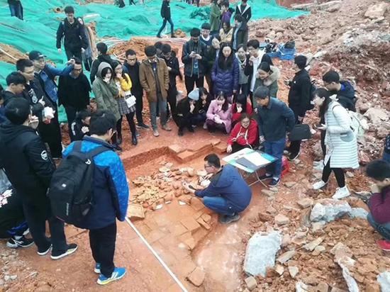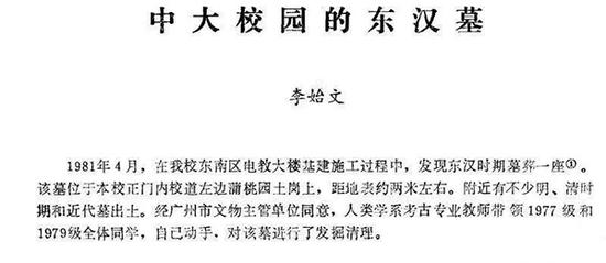 中山大学东南区电教大楼基建工地发现一处东汉墓穴。当时,由中山大学人类学系教师带领1977级和1979级全体同学自己动手,对该墓进行了发掘清理。