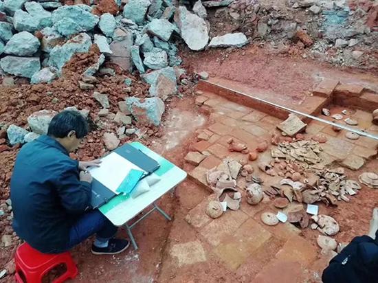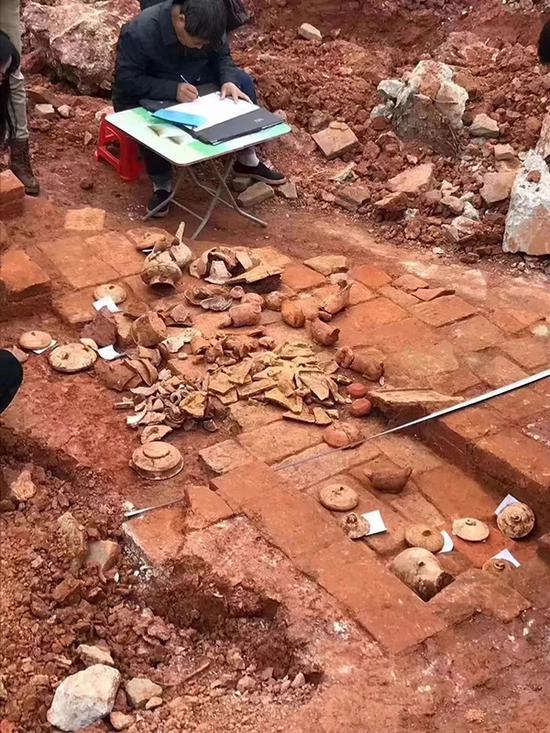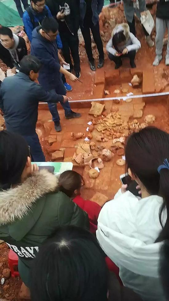 广州市海珠区新港西路中山大学西门一工地,挖掘出一处古墓,推测为东汉墓。