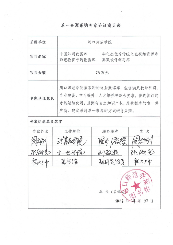 周口师范学院拟采购的这些数据库,能够满足教学科研、专业建设、学习提升、人才培养等综合要求,需连续订购才能继续使用,且拥有自主知识产权,是数据库的唯一供应商,建议采用单一来源的方式进行采购。参照“中华人民共和国政府采购法 第三十一条规定:符合下列情形之一的货物或者服务,可以依照本法采用单一来源方式采购:(一)只能从唯一供应商处采购的;”拟进行单一来源采购。