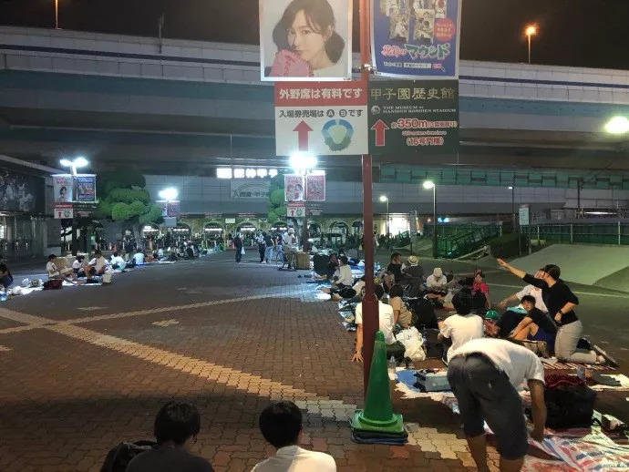 决赛前夜,还有大批人从各地赶到甲子园球场彻夜排队,来为他们应援。